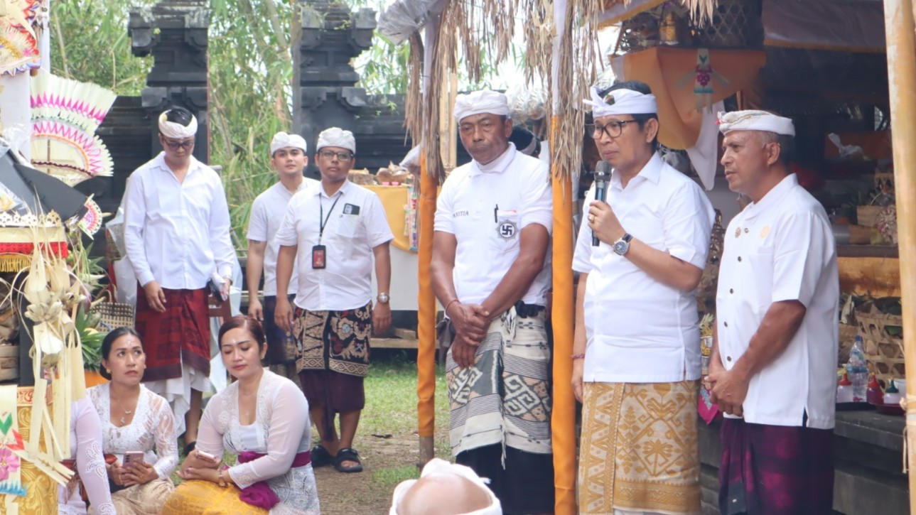 Dalam kunjungannya, Bupati Adi Arnawa turut melaksanakan prosesi Mendem Pedagingan di Pelinggih Padmasana dan berbaur bersama krama Desa Adat Batulantang dalam persembahyangan bersama.